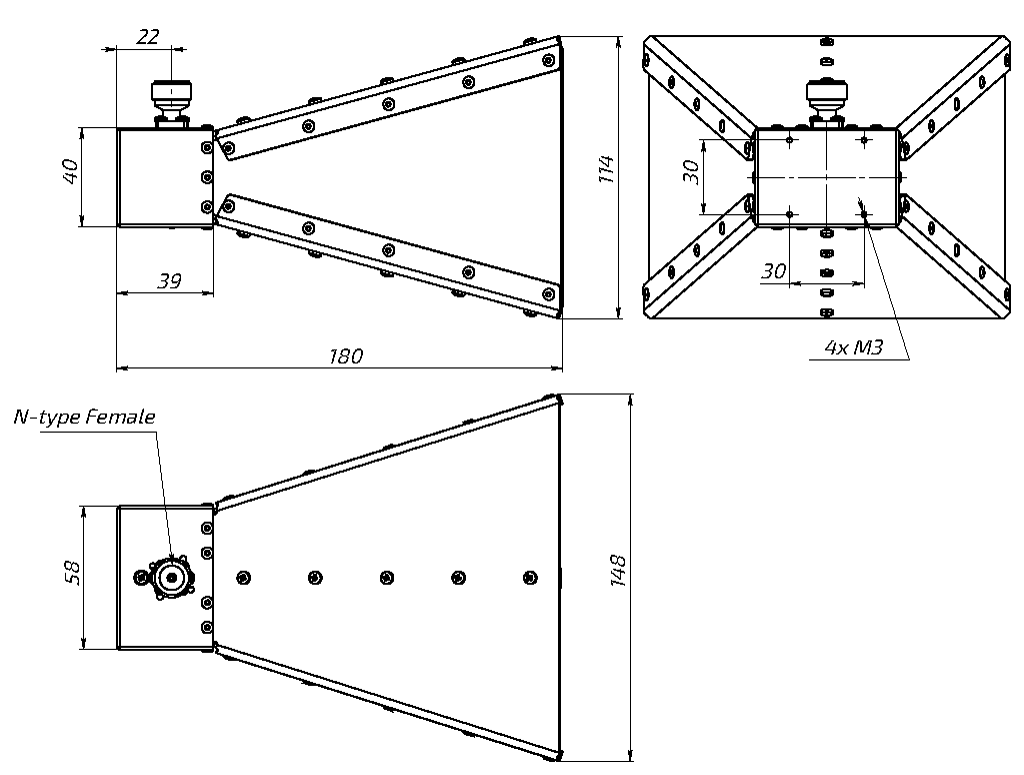 A-RWH-1560 Двогребнева рупорна антена | 1.5 GHz – 6 GHz