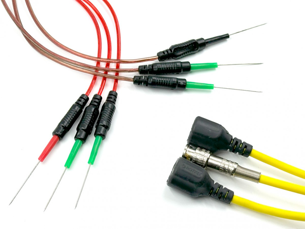 Дизайн щупа-смесителя разработан специально для проведения измерений на двигателях внутреннего сгорания и позволяет комфортно работать как с рядными, V-образными и оппозитными двигателями. Используется мягкий кабель с плотной экранирующей оплеткой, чтобы минимизировать уровень помех и получить высокую точность измеряемого сигнала. Сменные измерительные щупы изготовлены из мягкого кабеля в ПВХ изоляции. Щуп с гибкой измерительной иглой идеально подходит для подключения осциллографа к автомобильным разъемам и других труднодоступных мест. Тонкая игла и удобный держатель позволяет без повреждения проводки подключиться практически к любому разъему, не нарушая целостности цепи и изоляции электропроводки. Пружина защищает иглу от случайного обламывания.